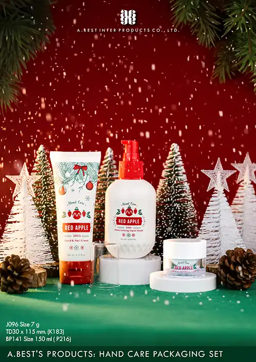 บริษัท เอ.เบสท์ อินเตอร์ โปรดักส์ จำกัด ผู้ผลิตบรรจุภัณฑ์เครื่องสำอางคุณภาพในประเทศไทย ขอเสนอ “ชุดบรรจุภัณฑ์บำรุงมือ (Hand Care Series)” ดีไซน์พิเศษที่ลงตัวทั้งฟังก์ชัน และความสวยงาม พร้อมให้คุณสร้างสรรค์ผลิตภัณฑ์ต้อนรับลมหนาวได้อย่างสมบูรณ์แบบ!